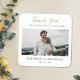 Esta simple montaña rusa boda de moda contiene palabras de agradecimiento por encima de tu foto favorita y tus nombres y la fecha por debajo. Hemos elegido un guión cálido y moderno para "Gracias" y hemos añadido "por compartir nuestro día especial" por debajo, con esa línea separada por el bucle de la "Y", mejorando su encanto relajado e íntimo. Este mensaje hace que esta montaña rusa sea adecuada para tu fiesta de bodas como expresión de tu gratitud y alegría en ese mismo momento. El texto es un gris muy oscuro que en realidad es en su mayoría negro, excepto por el guión de 'gracias', que hemos resaltado en un elegante tono dorado llamado California Gold. Por supuesto, puedes cambiar cualquier texto a cualquier color que se ajuste a tu estilo y a tu día, ya sea negro verdadero u otro color. También puede elegir un tipo de letra diferente para cualquiera o para todo el texto. Incluso puede que quiera cambiar la redacción de agradecimiento u otro texto a algo completamente diferente. Hemos elegido un fondo claro, que permite que el color de la montaña rusa simplemente sirva como tono base, pero en su lugar se puede elegir un color. Usa las herramientas de diseño intuitivo, tu foto favorita y tu inspiración para hacer de esta montaña rusa boda algo que te va a dejar y llevar a casa sin que te la usen. ¡Así que tal vez quieras pedir más! ;)