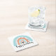Posavasos Cuadrado De Papel Feliz cumpleaños, Blue Peach