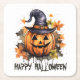Posavasos Cuadrado De Papel Feliz Halloween Maldad Grinning Pumpkin Art