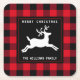 Posavasos Cuadrado De Papel Feliz Navidad Deer Black Búfalo Blanco