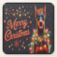Posavasos Cuadrado De Papel Feliz Navidad Doberman Perro Twinkling Noches Luce