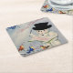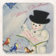 Posavasos Cuadrado De Papel Feliz Navidad Snowman con pájaros