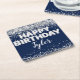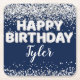 Posavasos Cuadrado De Papel Fiesta de cumpleaños de Navy Blue Silver