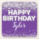 Posavasos Cuadrado De Papel Fiesta de cumpleaños Purple Silver