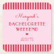 Posavasos Cuadrado De Papel Fines de semana de soltera con rayas rosadas y roj