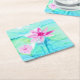 Posavasos Cuadrado De Papel Flores de Loto Rosa Pastel Acuarela