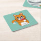Posavasos Cuadrado De Papel Gato blanco Naranja lindo comiendo Personalizado d