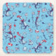 Posavasos Cuadrado De Papel Gato En El Gorra | Patrón azul