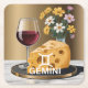Esta montaña rusa presenta una imagen gráfica para el signo de Zodiac Gemini con ingredientes gourmet. El centro de atención es una cuña de queso Gruyere con agujeros característicos, acompañada de un vaso medio lleno de vino tinto rubí y un pequeño jarrón de flores silvestres amarillas y blancas. Las palabras Gemini y el glifo Gemini están incorporadas al diseño. Un fondo de oro metálico aporta un fondo de lujo, con una mesa de mármol pulido que da soporte a la disposición. La iluminación difusa resalta las texturas del queso y del vino creando una composición visualmente equilibrada. La montaña rusa es una montaña rusa de pasta de papel cuadrado. Hay seis tiras en el conjunto de la montaña rusa.