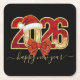 Posavasos Cuadrado De Papel Glittering 2026 New Year Design with Santa Hat