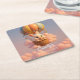 Posavasos Cuadrado De Papel Globo de aire caliente conejo con nubes rosadas