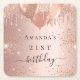Para una elegante fiesta de cumpleaños número 21 (o cualquier edad). Un rosa de oro falso de aspecto metálico. Decorada con oro rosa, goteo de purpurinas falsos rosados, pinturas que gotean, gotas purpurinas y globos. Personalice y agregue el nombre y la edad de 21 años.