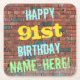 Este divertido diseño de montaña rusa con temática de cumpleaños muestra un mensaje como "FELIZ 91º CUMPLEAÑOS, NOMBRE - AQUÍ!", donde el nombre puede ser personalizado. El fondo está representado por una pared de ladrillo de ladrillo marrón rojizo. El texto del mensaje de personalizable presenta colores como azul, amarillo y verde, y tiene un aspecto inspirado en el de los graffitis pintados. Las posadas como estas pueden ser útiles como decoraciones prácticas en una fiesta de cumpleaños para alguien que está celebrando su cumpleaños noventa. [~Z0000288]