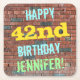 Este divertido diseño de montaña rusa con temática de cumpleaños muestra un mensaje como "FELIZ CUMPLEAÑOS 42, JENNIFER!", donde el nombre puede ser personalizado. El fondo está representado por una pared de ladrillo de ladrillo marrón rojizo. El texto del mensaje de personalizable presenta colores como azul, amarillo y verde, y tiene un aspecto inspirado en el de los graffitis pintados. Las galletitas como estas pueden ser útiles como decoraciones prácticas en una fiesta de cumpleaños para alguien que está celebrando su 42 cumpleaños. [~Z0000288]