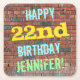Este divertido diseño de montaña rusa con temática de cumpleaños muestra un mensaje como "FELIZ 22 cumpleaños, JENNIFER!", donde el nombre puede ser personalizado. El fondo está representado por una pared de ladrillo de ladrillo marrón rojizo. El texto del mensaje de personalizable presenta colores como azul, amarillo y verde, y tiene un aspecto inspirado en el de los graffitis pintados. Las posavasos como estas pueden ser útiles como decoraciones prácticas en una fiesta de cumpleaños para alguien que está celebrando su vigésimo segundo cumpleaños. [~Z0000288]