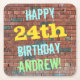 Este divertido diseño de montaña rusa con temática de cumpleaños incluye un mensaje como "¡FELIZ CUMPLEAÑOS 24, ANDREW!", donde el nombre puede ser personalizado. El fondo está representado por una pared de ladrillo de ladrillo marrón rojizo. El texto del mensaje de personalizable presenta colores como azul, amarillo y verde, y tiene un aspecto inspirado en el de los graffitis pintados. Las galletitas como estas pueden ser útiles como decoraciones prácticas en una fiesta de cumpleaños para alguien que está celebrando su vigésimo cuarto cumpleaños. [~Z0000288]