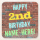 Este divertido diseño de montaña rusa con temática de cumpleaños incluye un mensaje como "¡FELIZ 2º CUMPLEAÑOS, NOMBRE-AQUÍ!", donde el nombre puede ser personalizado. El fondo está representado por una pared de ladrillo de ladrillo marrón rojizo. El texto del mensaje de personalizable presenta colores como azul, amarillo y verde, y tiene un aspecto inspirado en el de los graffitis pintados. Las galletitas como estas pueden ser útiles como decoraciones prácticas en una fiesta de cumpleaños para alguien que está celebrando su segundo cumpleaños. [~Z0000288]