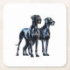 Un ilustracion estilizado de dos majestuosos grandes daneses parados uno al lado del otro, mostrando sus cuerpos elegantes y musculares y sus rasgos elegantes. Los perros son negros con abrigos lisos y brillantes, acentuados por las sombras dramáticas y los resaltados para enfatizar sus fuertes físicos con un sutil efecto acuarela que añade un toque artístico.