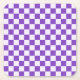 A purple and white checkerboard pattern with alternating squares, creating a balanced design. The vibrant colors give a playful, energetic feel.