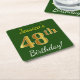 Posavasos Cuadrado De Papel Green, Faux Gold 48th Birthday + Custom Name