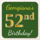 Posavasos Cuadrado De Papel Green, Faux Gold 52nd Birthday + Custom Name