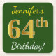 Posavasos Cuadrado De Papel Green, Faux Gold 64th Birthday + Custom Name