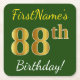 Posavasos Cuadrado De Papel Green, Faux Gold 88th Birthday + Custom Name
