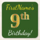 Posavasos Cuadrado De Papel Green, Faux Gold 9Cumpleaños + Custom Name