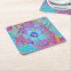 Posavasos Cuadrado De Papel Hibiscus psicodélico retro arcoiris azul
