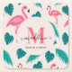 Hojas tropicales Flamingo rosa caliente Monograma moderno escayola de papel cuadrado