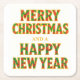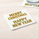 Fun festive coasters with "Merry Christmas and a Happy New Year "on it. Lettering in a cheery red and green geometric pattern outlined in gold. Makes a great hostess gift with holiday wine when getting together with family or friends.