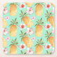 Posavasos Cuadrado De Papel Impresión tropical retro sobre fondo de menta
