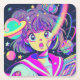 Chica de anime de Kawaii en la escoria de papel cuadrado en el espacio