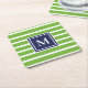 Posavasos Cuadrado De Papel Kelly Green Stripe Modern Monogram Coastal Beach