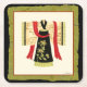 Nancy Slocum creó esta encantadora imagen de un Kimono japonés tradicional con un sash rojo profundo. El fondo del kimono es negro con una hermosa huella floral. ¡Dale esto como regalo o compre por ti mismo!