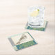 Posavasos Cuadrado De Papel Lechuza gris sobre fondo de patrón