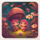 Posavasos Cuadrado De Papel Los adorables elfos juegan bajo hongos
