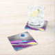 Un hermoso diseño paisajístico abstracto con una luna azul y coloridas colinas onduladas en tonos violeta, azul, cian y amarillo.
