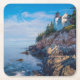 Posavasos Cuadrado De Papel Mañana Sun en el faro bajo del puerto