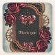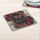 Posavasos Cuadrado De Papel Marco Steampunk con rosas y engranajes rojos