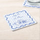 Posavasos Cuadrado De Papel Marejadas azules onduladas borde playa favores de