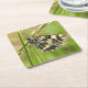 Posavasos Cuadrado De Papel Mariposa blanca desangrada en la hierba