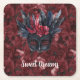 Posavasos Cuadrado De Papel Máscara de plumas rojas borgoña negras