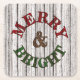 Posavasos Cuadrado De Papel Merry & Bright On Weathered Wooden Planks Pattern