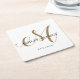 Posavasos Cuadrado De Papel Moda Oro M Monograma Nombre de guión Boda Fecha