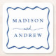 Posavasos Cuadrado De Papel Moderno Boda de marco ondulado azul