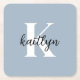 Posavasos Cuadrado De Papel Monograma azul turbio