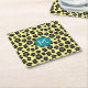 Posavasos Cuadrado De Papel Monograma de impresión de leopardo amarillo y gris