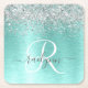 Posavasos Cuadrado De Papel Monograma del Purpurina plateado Metalizado cepill