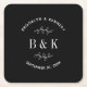 Posavasos Cuadrado De Papel Monograma froral blanco negro nombre de pareja